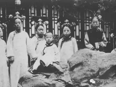 隆裕太后(右一)、溥仪(中)与众宫嫔