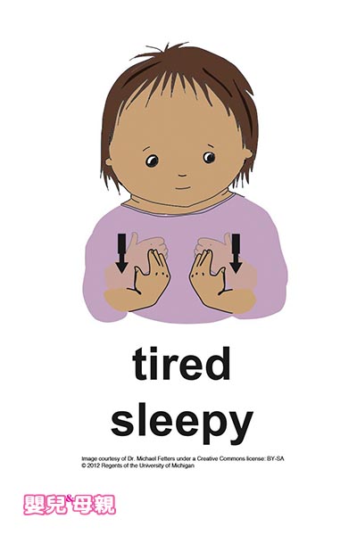 1.寶寶累了覺得睏:掌心朝內,由上往下滑動