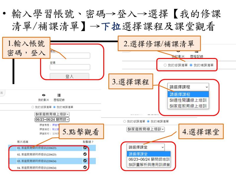 請選擇要學習的課程、課堂,點擊影片名稱開始學習;