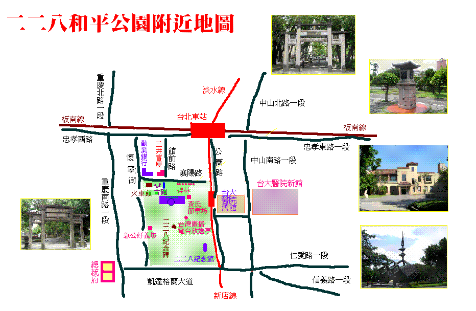 二二八事件發生的五十年之後, 政府才終於在這座公園內豎立起這座紀念碑。這個事件整整被壓抑了四、五十年,成為一項禁忌,也因長期壓抑而形成一種陰影。