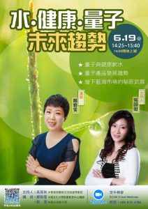 水 健康 量子未來趨勢 2021/06/09 Leave a Comment on 水 健康 量子未來趨勢 Posted in 分享會, 活動訊息&花絮 活動日期:2021/06/19 (六)時間:14:25~15:40地點:空中相會Zoom Cloud Meetings房號466 810 4786 活動花絮